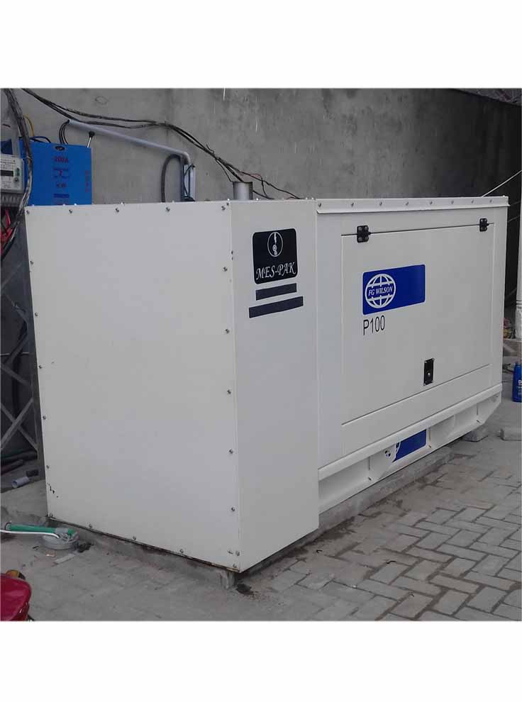 Perkins UK F.G Wilson gen set model P100 rating 100KVA / 80KW is available in a sound proof canopy. This application is suitable for your medium-size home, medium-size office, medium-size departimantal store, medium-size market, medium-size petrol pump, medium-size restaurant, medium-size medical clinic, medium-size wedding hall, or anywhere of your choice according to its maximum load capacity limits. Send your online request for quote for pricing of gen set and other allied services and equipment for your installation.