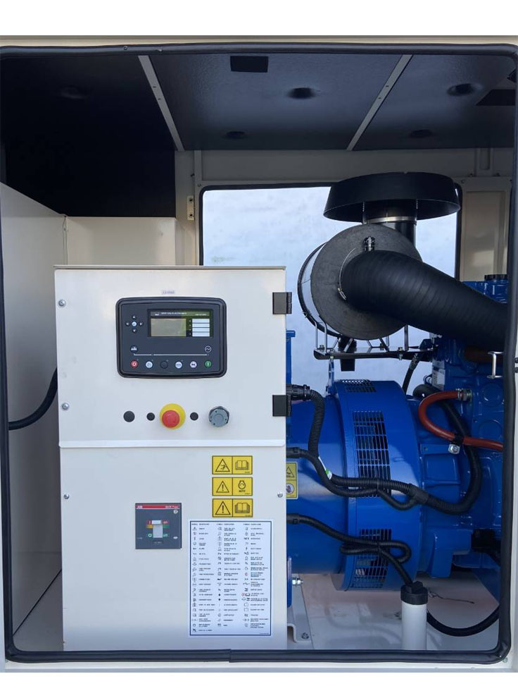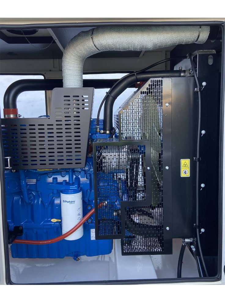 Perkins UK F.G Wilson gen set model P30 minimum rating 30KVA / 24KW or with maximum rating 33KVA / 26.4KW is available in a sound proof canopy. This application is suitable for your medium-size home, medium-size office, medium-size departimantal store, medium-size market, medium-size petrol pump, medium-size restaurant, medium-size medical clinic, medium-size wedding hall, or anywhere of your choice according to its maximum load capacity limits. Send your online request for quote for pricing of gen set and other allied services and equipment for your installation.