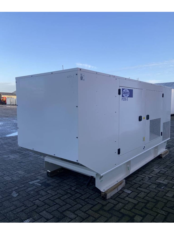Perkins UK F.G Wilson gen set model P250 rating 250KVA / 200KW is available in a sound proof canopy. This application is suitable for your medium-size home, medium-size office, medium-size departimantal store, medium-size market, medium-size petrol pump, medium-size restaurant, medium-size medical clinic or hospital, medium-size wedding hall or marquee, or anywhere of your choice according to its maximum load capacity limits. Send your online request for quote for pricing of gen set and other allied services and equipment for your installation.