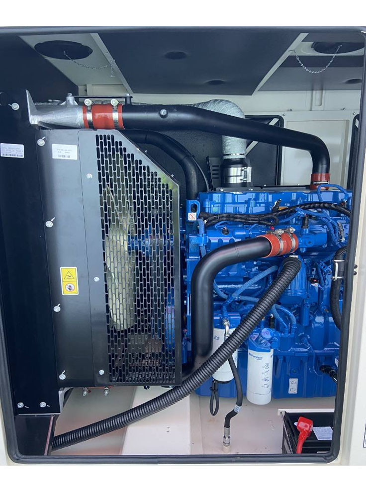 Perkins UK F.G Wilson gen set model P110 rating 110KVA / 88KW is available in a sound proof canopy. This application is suitable for your medium-size home, medium-size office, medium-size departimantal store, medium-size market, medium-size petrol pump, medium-size restaurant, medium-size medical clinic, medium-size wedding hall, or anywhere of your choice according to its maximum load capacity limits. Send your online request for quote for pricing of gen set and other allied services and equipment for your installation.
