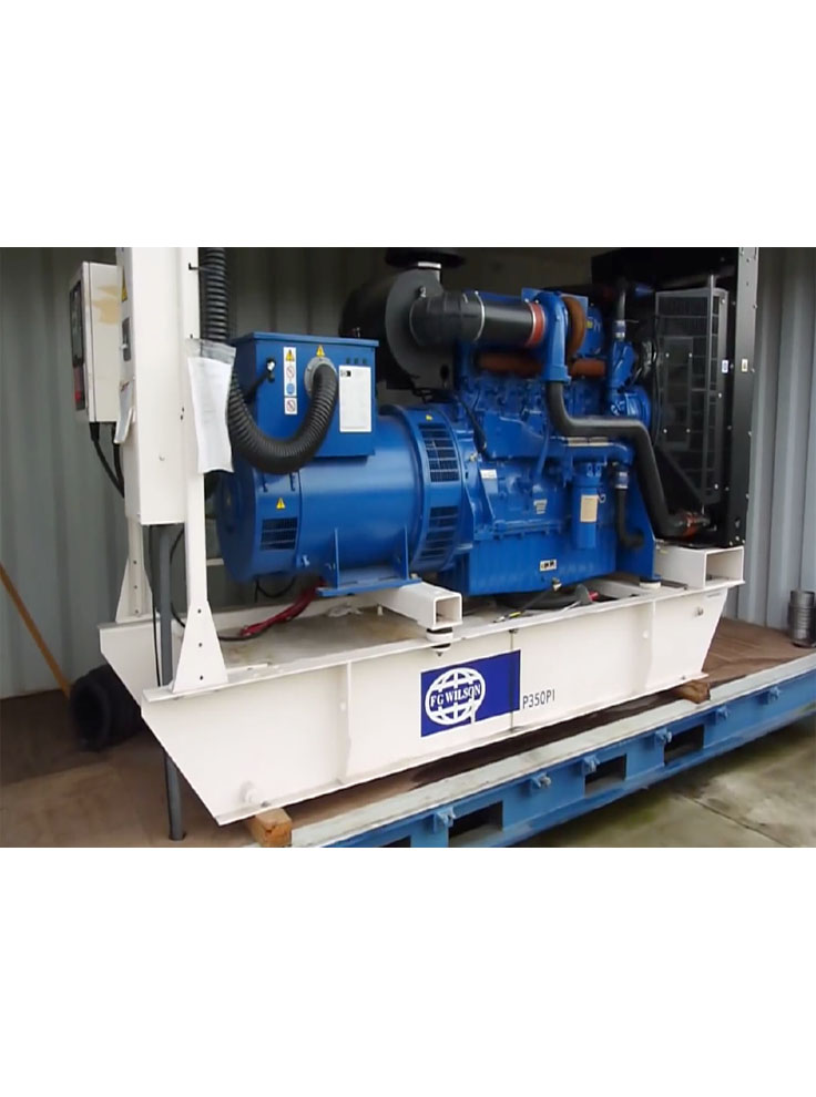 Perkins UK F.G Wilson gen set model P350 rating 350KVA / 280KW is available in a sound proof canopy. This application is suitable for your semilarge-size home, semilarge-size office, semilarge-size departimantal store, semilarge-size market or shopping mall, semilarge-size petrol pump, semilarge-size restaurant, semilarg-size hotel or motel, semilarge-size medical clinic or hospital, semilage-size wedding hall or marquee, or anywhere of your choice according to its maximum load capacity limits. Send your online request for quote for pricing of gen set and other allied services and equipment for your installation.