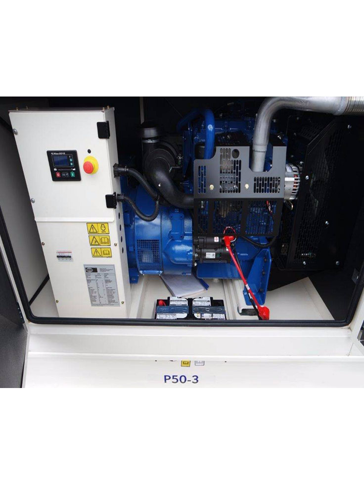 Perkins UK F.G Wilson gen set model P50 rating 50KVA / 40KW is available in a sound proof canopy. This application is suitable for your medium-size home, medium-size office, medium-size departimantal store, medium-size market, medium-size petrol pump, medium-size restaurant, medium-size medical clinic, medium-size wedding hall, or anywhere of your choice according to its maximum load capacity limits. Send your online request for quote for pricing of gen set and other allied services and equipment for your installation.
